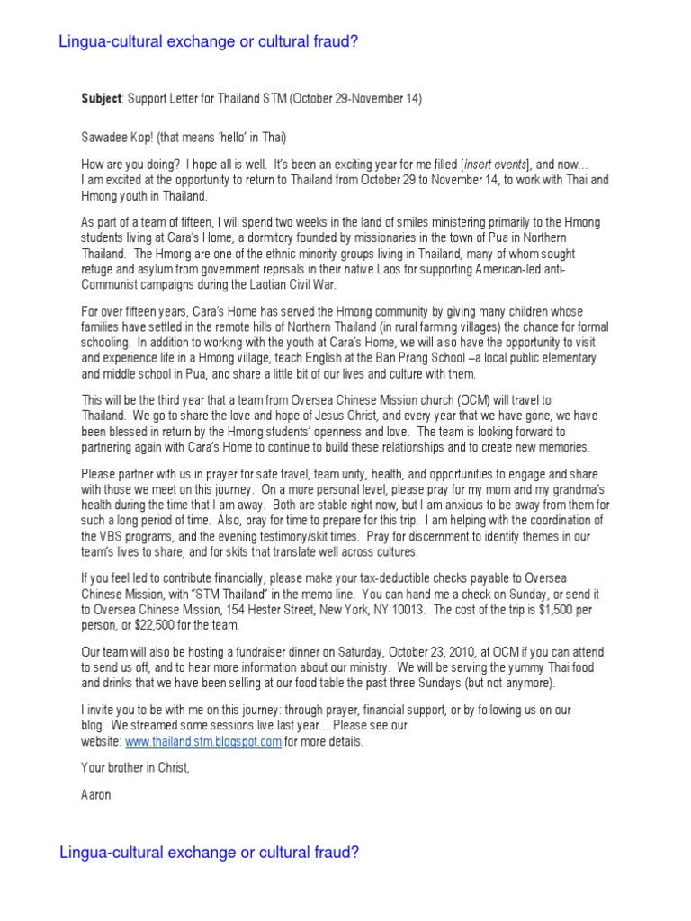Mission trip support letter. B s psychology and criminal justice illinois state university. What you are doing and why start your letter with the details of your ministry trip. 5 things you need to include in a missions support letter 1.