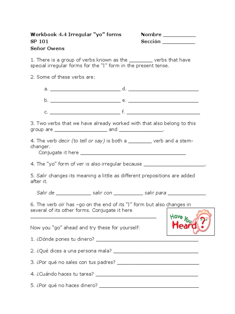 Workbook 4 4 Irregular Yo Forms Syntax Semantic Units