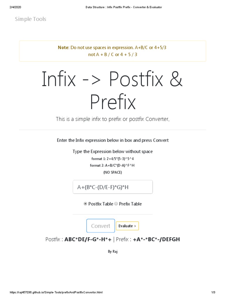 To convert an infix to postfix expression refer to this article stack set 2 infix to postfix. Prefix to infix conversion. This tool gives you a way to change between infix seen normally in most writing and post fix also known as reverse polish notation or polish postfix notation which is used in some hp calculators such as the 9100a and hp 35.