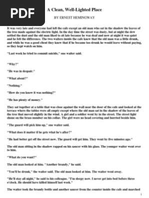 Doc Ernest Hemingway S A Clean Well Lighted Place Muskan Jaiswal Academia Edu