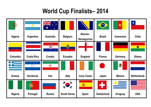 A4 Image Of Flags Of Countries In 2014 World Cup Teaching Resources