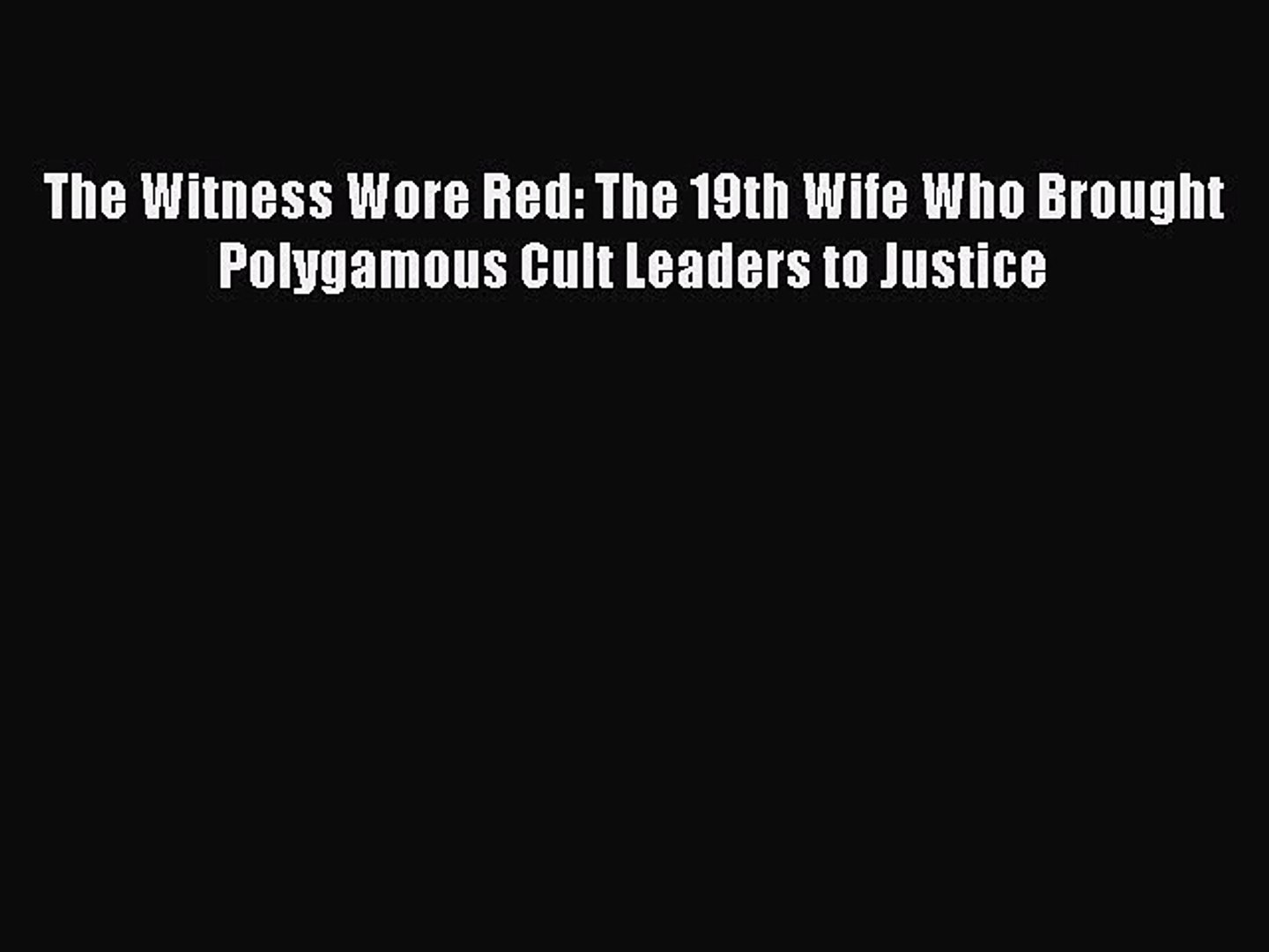 The witness wore red is a gripping account of one woman s struggle to escape the perverse embrace of religious fanaticism and sexual slavery and a courageous story of hope and transformation. The witness wore red is a gripping account of one woman s struggle to escape the perverse embrace of religious fanaticism and sexual slavery and a courageous story of hope and transformation. The 19th wife who brought polygamous cult leaders to justice.