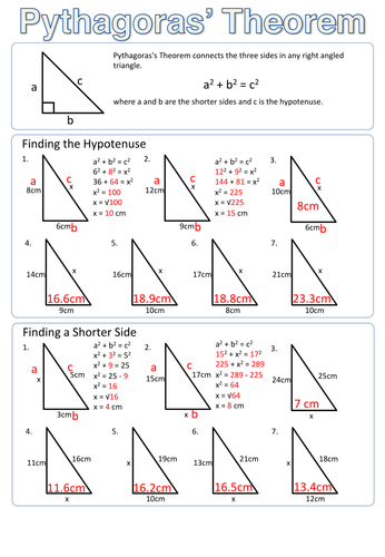 Where necessary round you answer correct to one decimal place. It states that the square of the hypotenuse the side opposite the right angle is equal to the sum of the squares of the other two sides. Word problems on real time application are available.