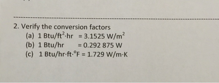 Solved 2 Verify The Conversion Factors A 1 Btu Ft2 Hr