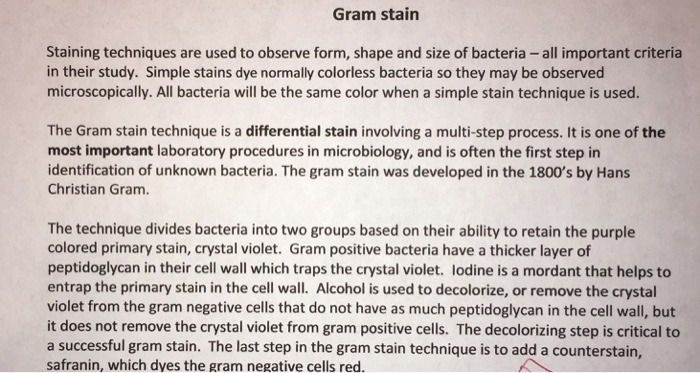 The thick cell wall of gram positive cells is dehydrated by the decolorizing step causing them to shrink and trapping the stain iodine complex inside. Bohumil drasar emeritus professor of bacteriology. Hans christian gram in 1884 the gram stain is a differential stain that is used in identifying bacteria.
