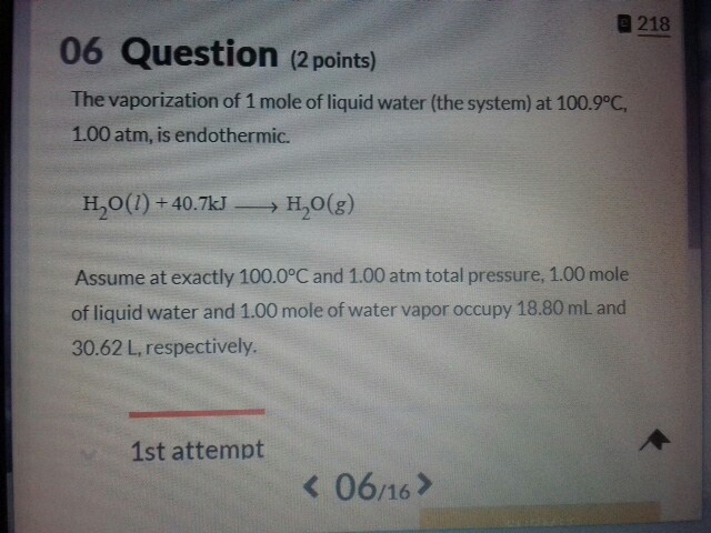 Oneclass The Vaporization Of 1 Mole Of Liquid Water The System At 100 9a C 1 00 Atm Is Endotherm
