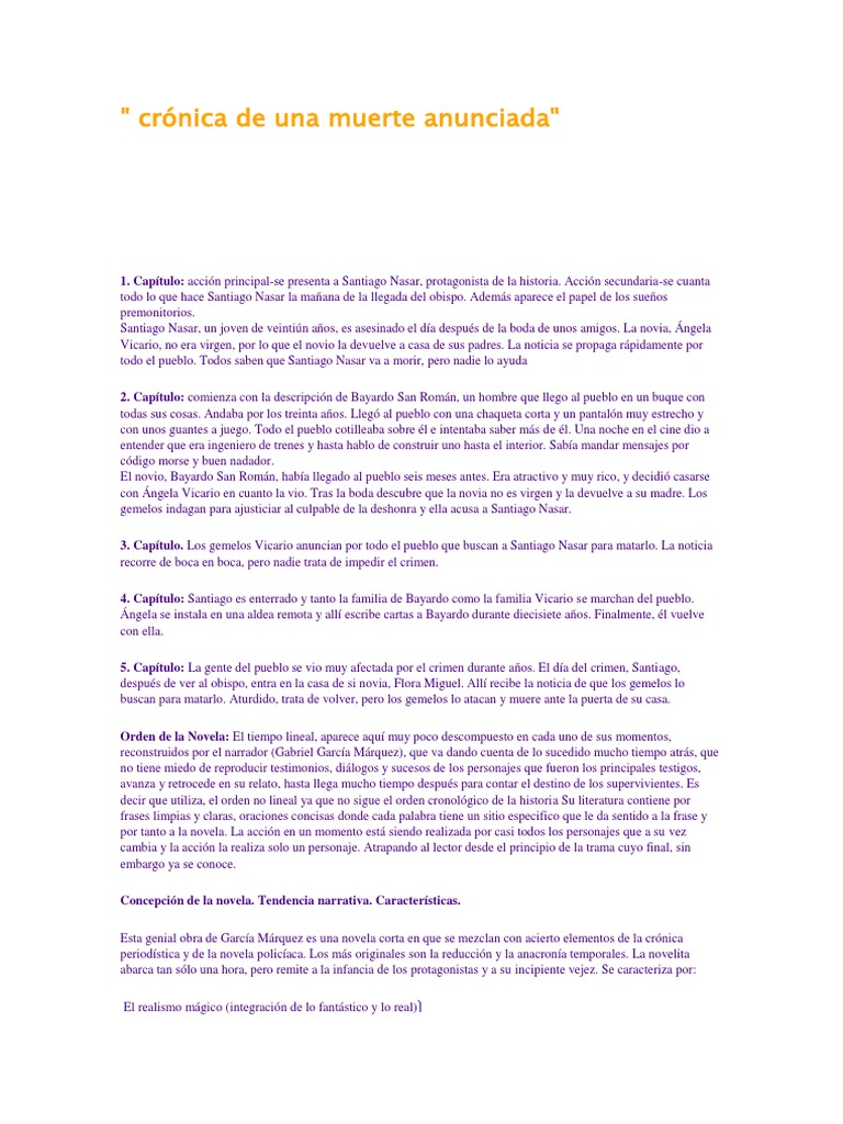 Resumen Por Capitulos De Cronica De Una Muerte Anunciada Pdf