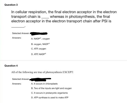 The final electron acceptor in photosynthesis is nadp the final acceptor of electrons in the electron transport chain is. Nadp in the light reactions and o2 in respiration. Nadp in mitochondria an electron transport chain pumps protons from the matrix into the intermembrane space whereas in chloroplasts an electron transport chain pumps protons from the.