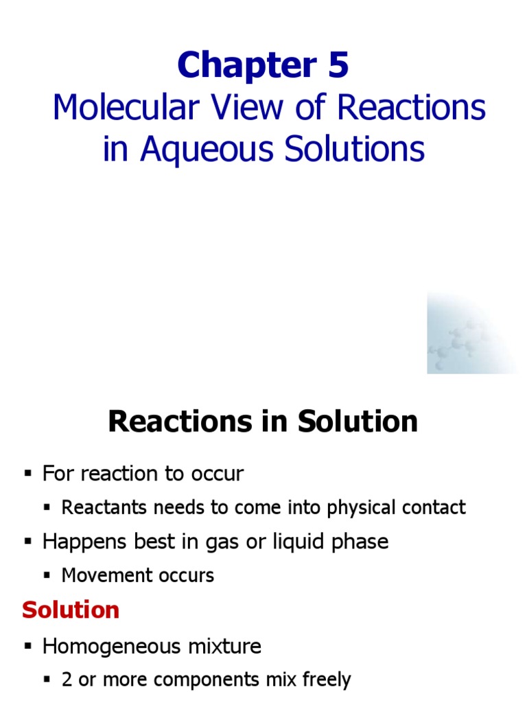 Molecular View Of Reactions In Aqueous Solutions Solution