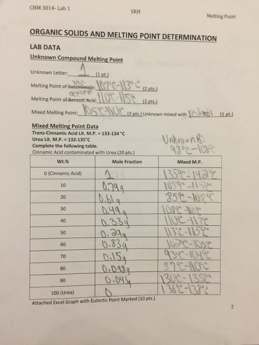 Unknown Compound Melting Point Unknown Letter Chegg Com
