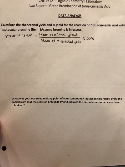 Solved Addition Of Bromine To Trans Cinnamic Acid Objecti