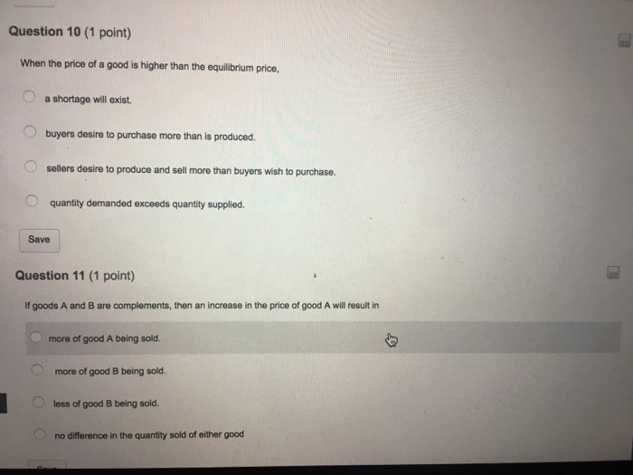 Solved Question 10 1 Point When The Price Of A Good Is