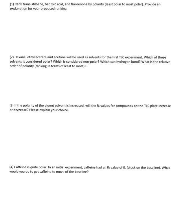 Solved Rank Trans Stilbene Benzoic Acid And Fluorenone