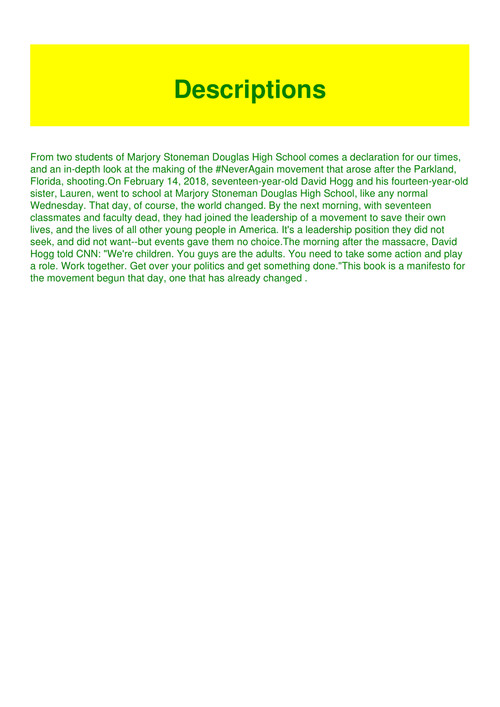 On february 14 2018 seventeen year old david hogg and his fourteen year old sister lauren went to school at marjory stoneman douglas high school like any normal wednesday. Cancel anytime 1 free audiobook select audible originals. New york times bestseller from two survivors of the parkland florida shooting comes a declaration for our times and an in depth look at the making of the neveragain movement.