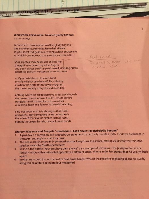 Somewhere I Have Never Traveled Gladly Beyond Ca Chegg Com