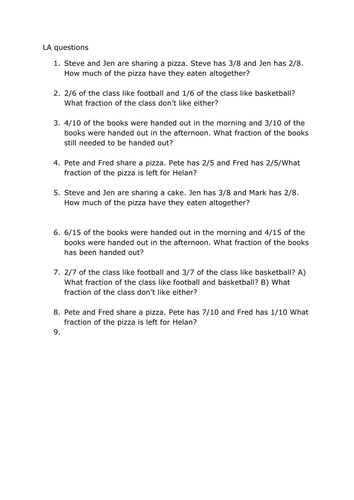 Year 5 Fraction Word Problems Differentiated Worksheets