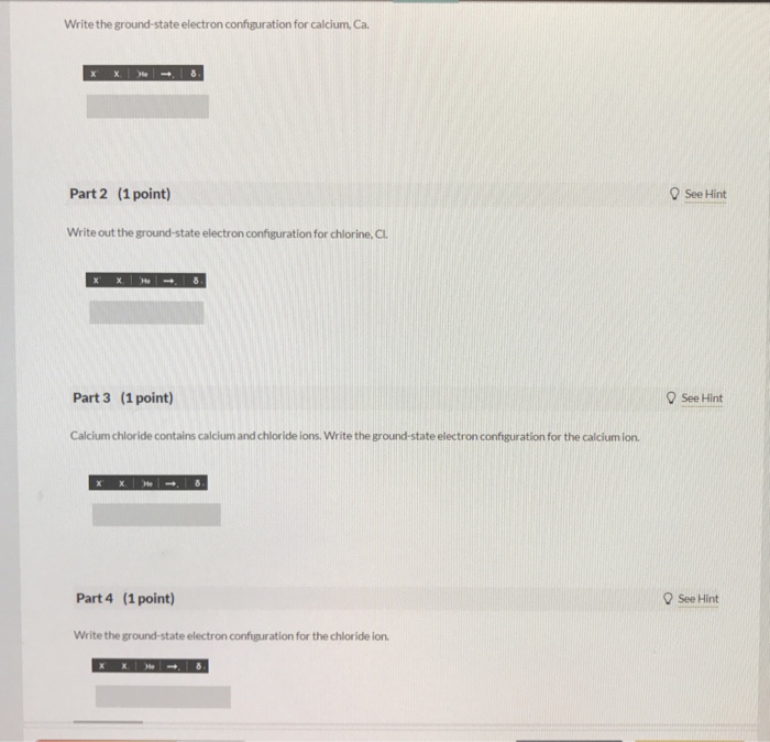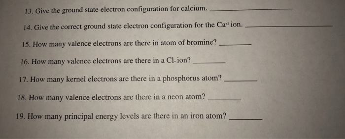 Therefore the calcium electron configuration will be 1s 2 2s 2 2p 6 3s 2 3p 6 4s 2. The electron configuration of calcium is 1s 2s 2p. Write the ground state electron configuration for the calcium ion.