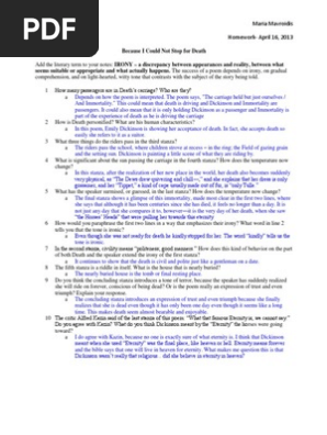 Because i could not stop for death analysis. But death never forgets and comes after those whose time in this realm is over. Dickinson didn t title any of her poems because she never meant to publish them. Death being a separate entity kindly takes her on a long journey with him and immortality.