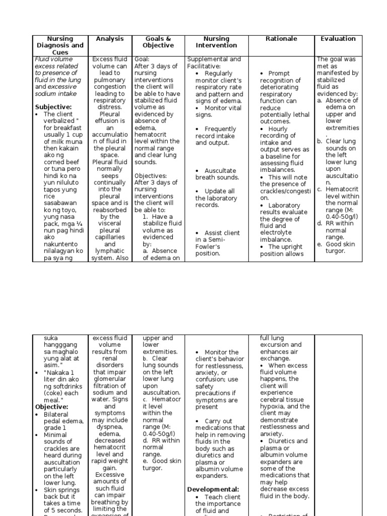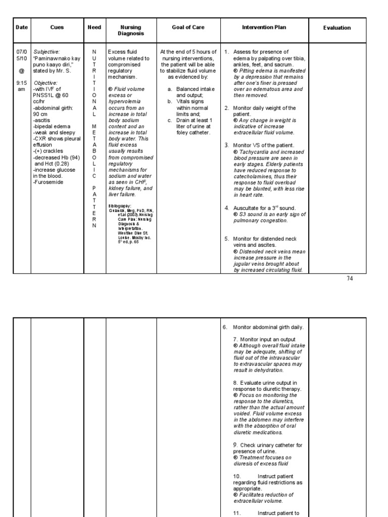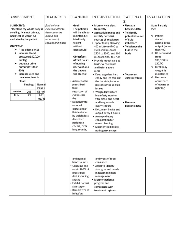 Excess Fluid Volume Nursing Care Plan Daily Rn