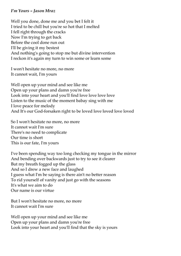 I M Yours Chords And Lyrics Teaching Resources