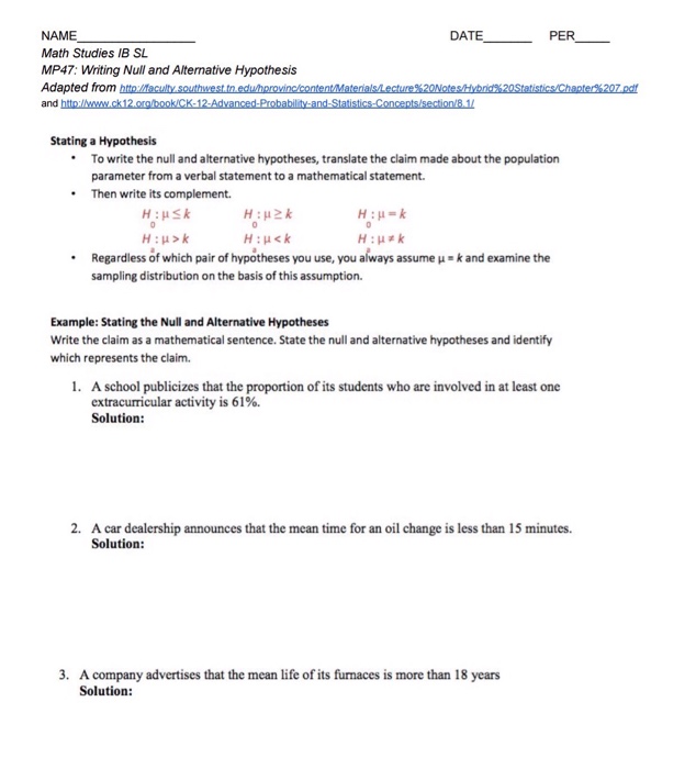 Solved Name Math Studies Ib Sl Mp47 Writing Null And Alt