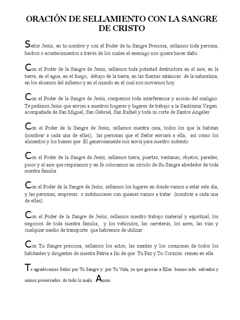 Oracion De Sellamiento A Sangre De Cristo Doc Cristo Titulo