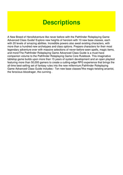 Pathfinder advanced class guide pdf download direct at download4share pathfinder advanced class guide pdf size. Adventure like never before with the pathfinder roleplaying game advanced class guide. Game masters also called gms are encouraged to allow players to.