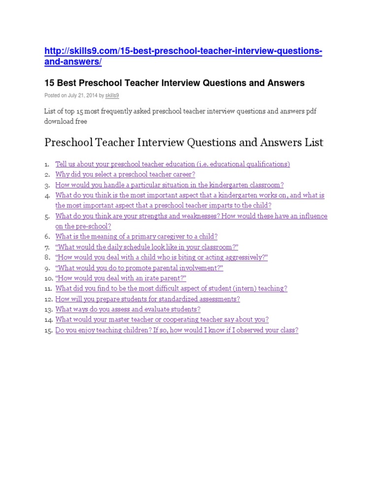Preschool Teacher Interview Questions And Answers Pnxkegjm394v