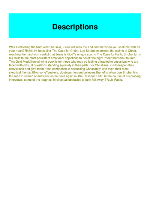 Even a cursory examination of the evidence was enough to. Free download or read online the case for faith. You can obtain the case for faith student edition.