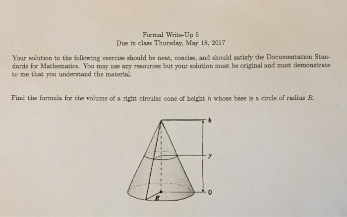 Solved Derive The Formula For The Volume Of A Right Circu