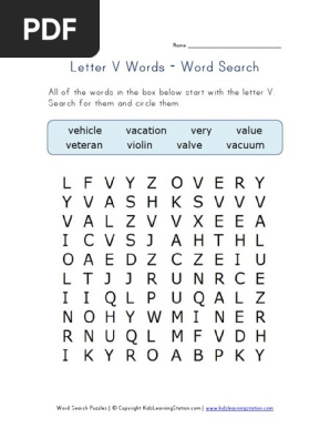 Letter V Word Search All Kids Network
