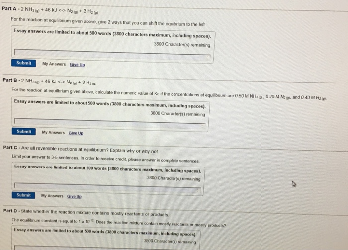Solved Part A 2 Nh 46 Kjn3 H2a For The Reaction At Equi