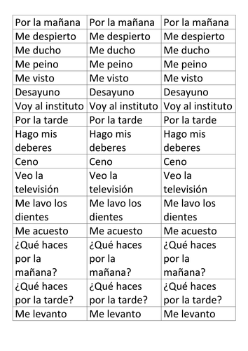 Spanish Daily Routine Test Flashcards On Tinycards