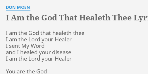 I am the god that healeth thee i am the lord your healer i sent my word and i healed your disease i. I am the god that healeth thee lyrics.