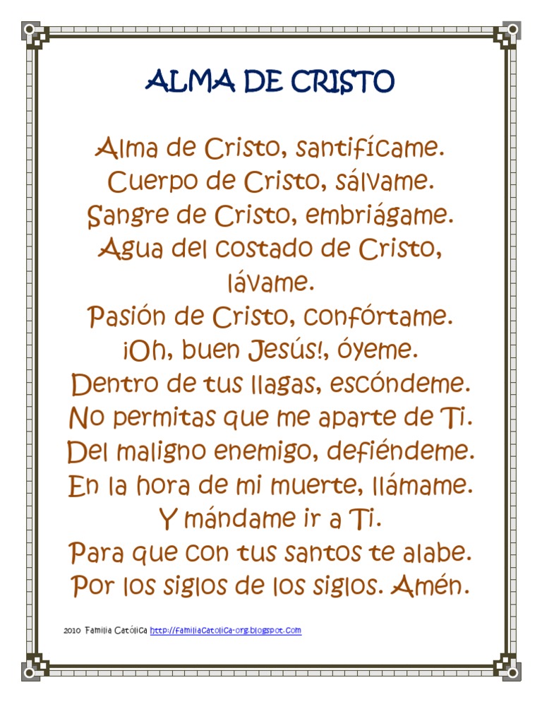 Oracion Alma De Cristo Alma De Cristo Santificame Cuerpo