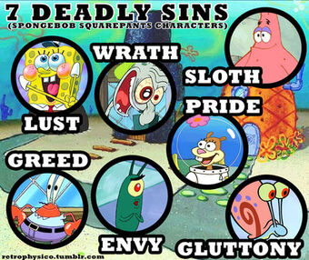 Spongebob 7 deadly sins. Spongebob squarepants and the seven deadly sins december 6 2016 by duncan stewart leave a comment we tend to think of children s television as safe a place for our kids a bastion of innocence in a sometimes scary world. A lot can be said about the characters in spongebob squarepants and their eccentricity but some viewers have found similarities between them and the seven deadly sins. Each of the main characters in spongebob squarepants was inspired by one of the seven deadly sins.