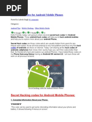 Android secret codes and hacks pdf. Also check android secret codes list. Best android secret hacking codes. If you are a beginner then i suggest taking help of some expert.