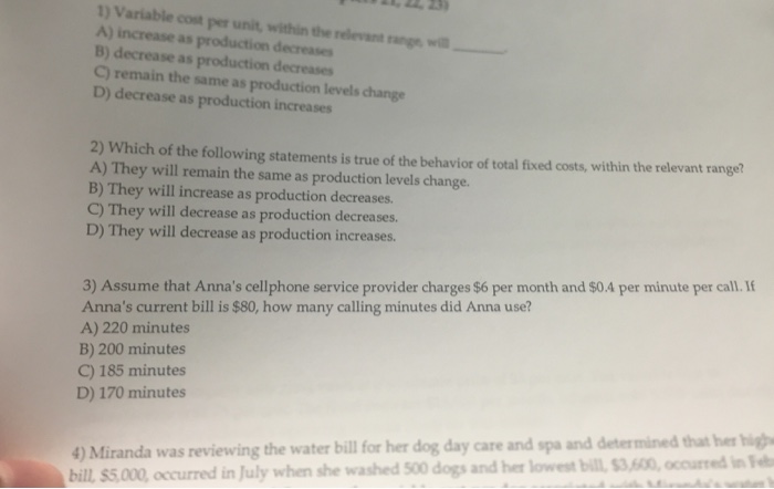 Within The Relevant Range O 1 Variable Cost Per Unit Decreases
