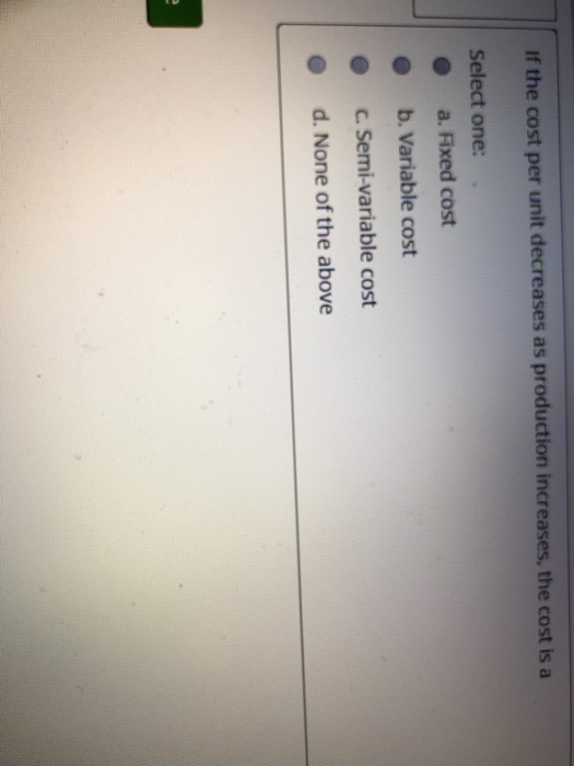 Solved 28 The Variable Cost Per Unit A Decreases As The
