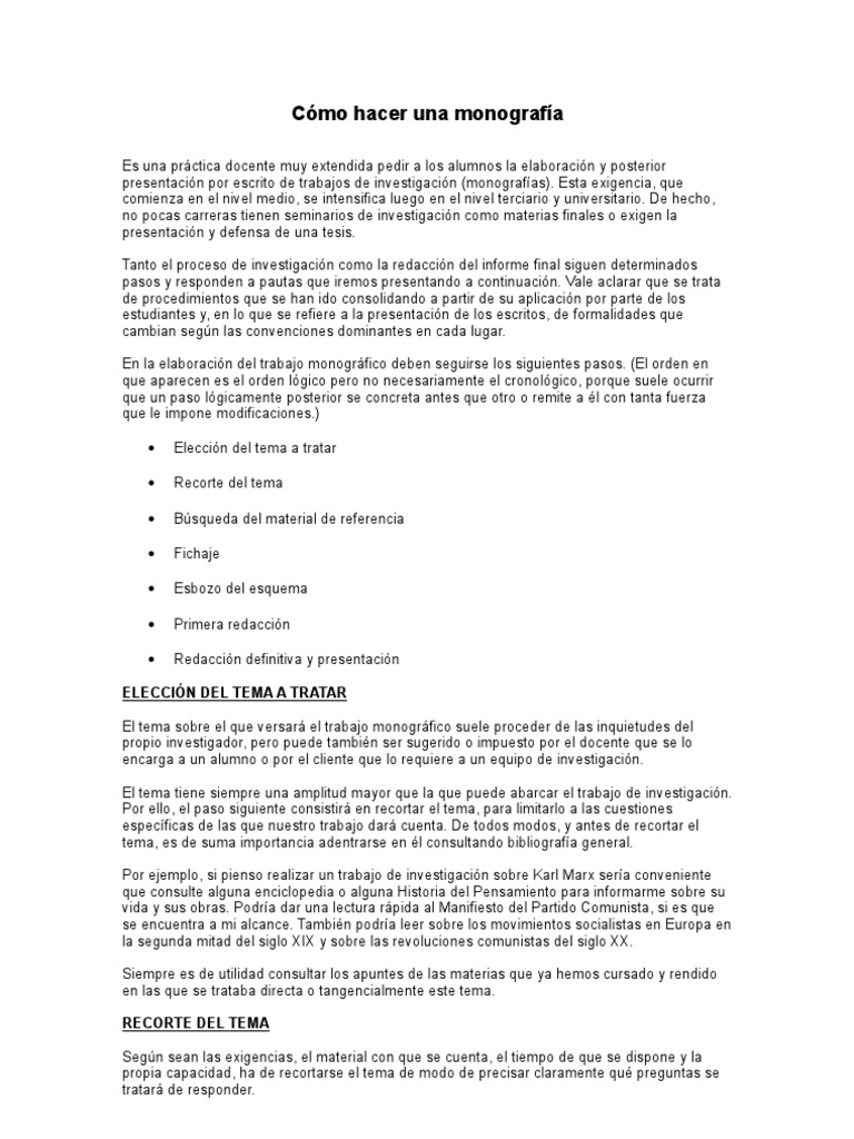 Como Hacer Una Monografia Docsity
