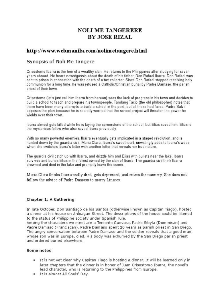 Ang pagbasa nito at ng itong kasunod ang el filibusterismo ay kailangan para sa mga mag aaral sa sekondarya. Ang noli me tángere ay isang nobelang isinulat ni jose rizal at inilathala noong 1887 sa europa.