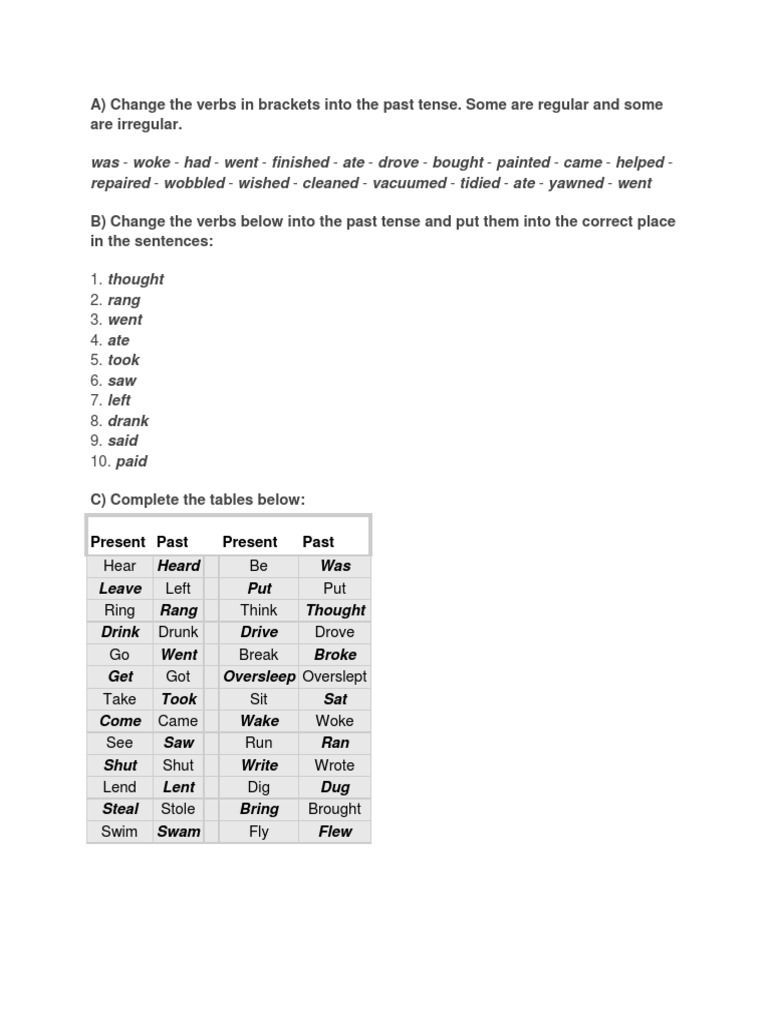 Revise Irregular Verbs Write The Simple Past Tense And The Past