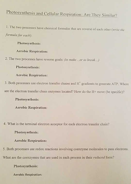 Photosynthesis And Cellular Respiration Worksheet Fill Online