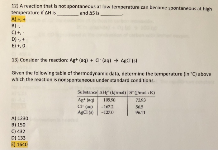 Solved 12 A Reaction That Is Not Spontaneous At Low Temp