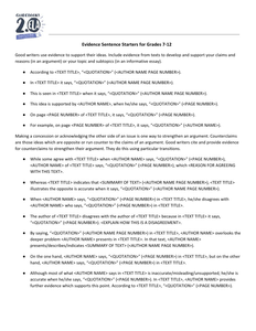 Evidence Sentence Starters Grades 7 12 Learnzillion